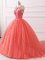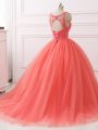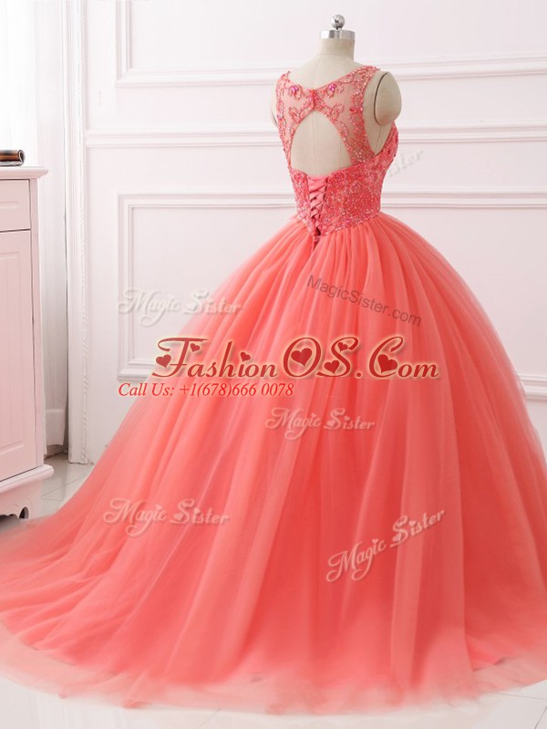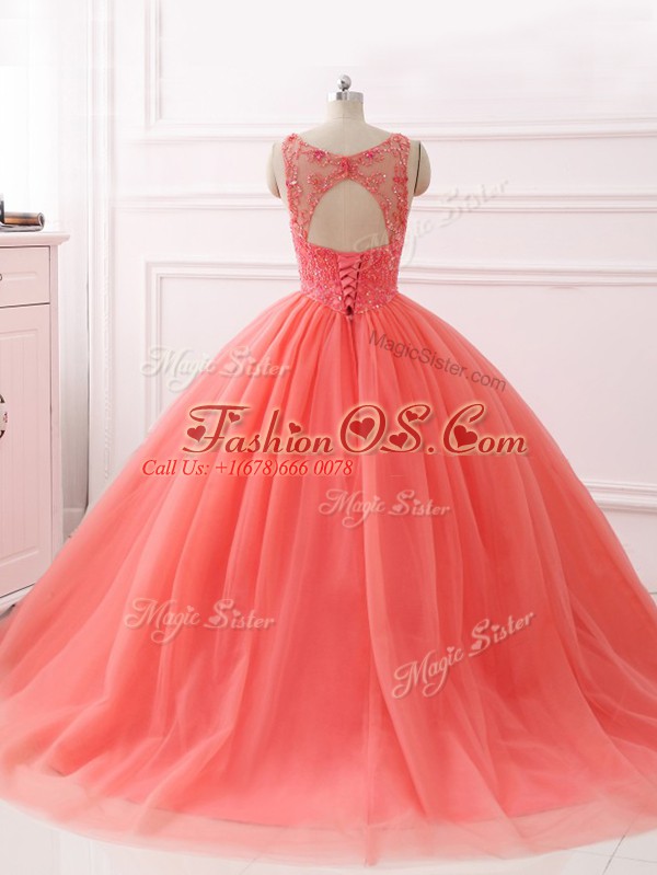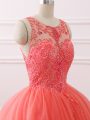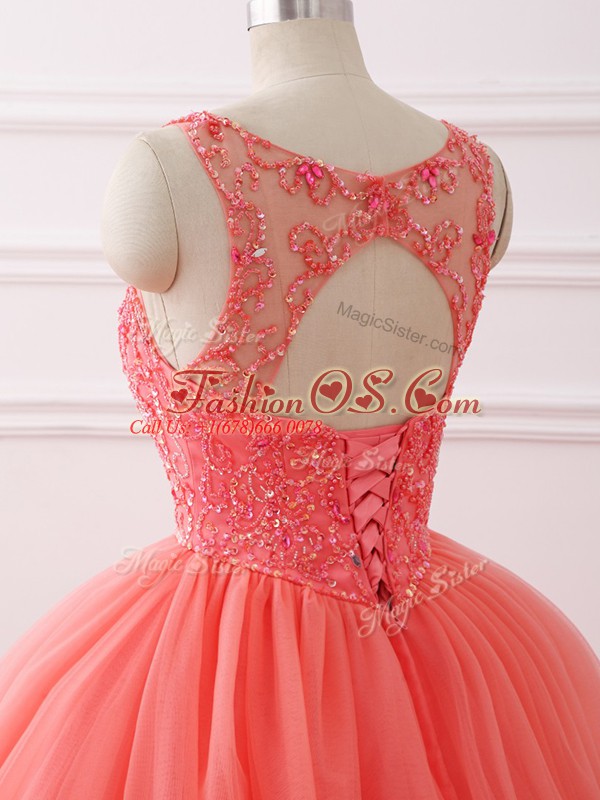 Great Coral Red Sweetheart Neckline Beading and Lace Quinceanera Gowns Sleeveless Lace Up