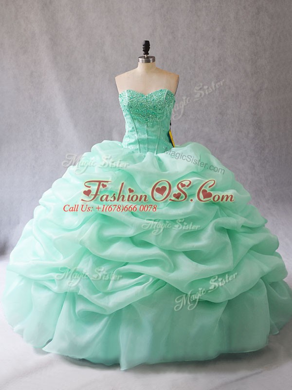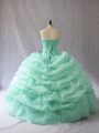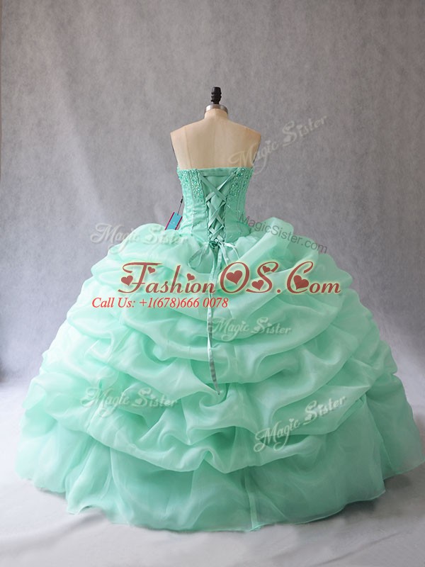 Great Floor Length Lace Up Sweet 16 Dresses Apple Green for Sweet 16 and Quinceanera with Beading and Pick Ups