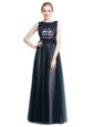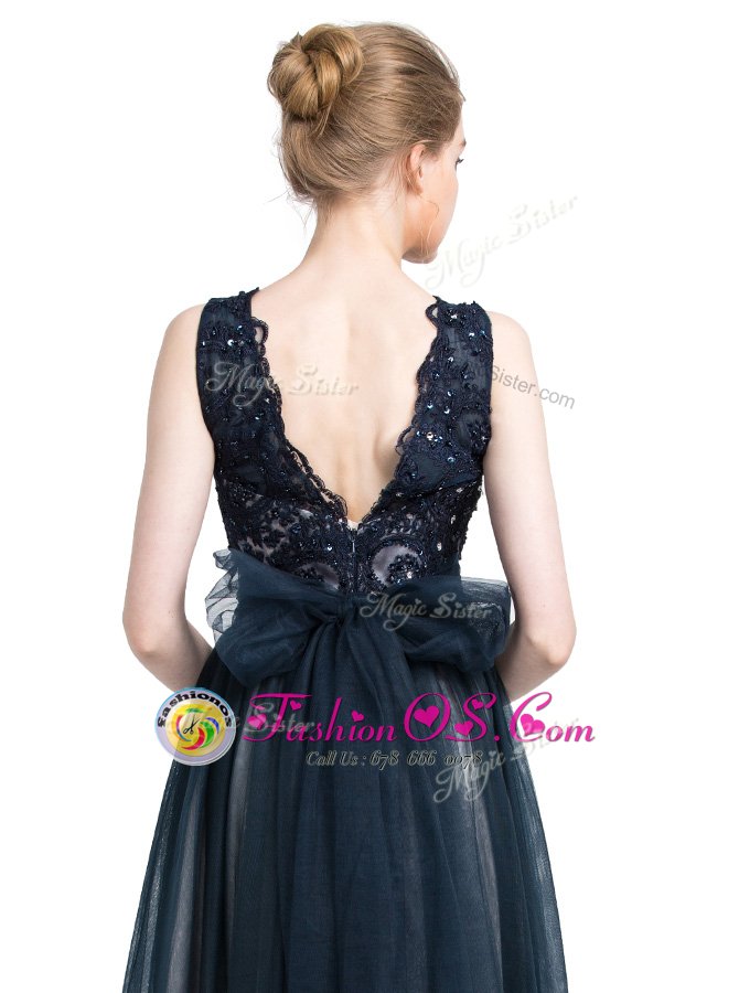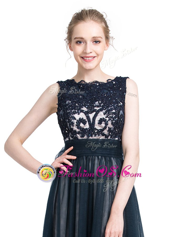 Home >  Special Occasion Dresses >  Homecoming Dresses > Great Floor Length Navy Blue Homecoming Gowns Scalloped Sleeveless Zipper