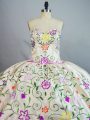 Great Fuchsia Ball Gowns Sweetheart Sleeveless Organza Floor Length Lace Up Embroidery Sweet 16 Quinceanera Dress