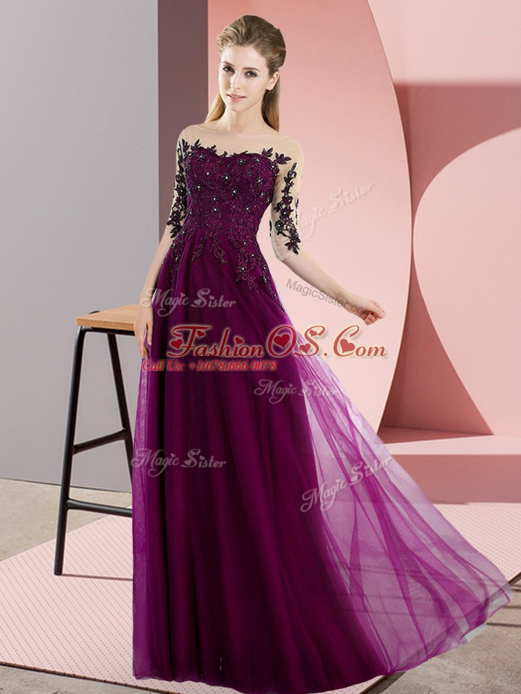 Home >  Special Occasion Dresses >  New Style Dama Dresses > Great Fuchsia Chiffon Lace Up Dama Dress for Quinceanera Half Sleeves Floor Length Beading and Lace