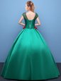 Great Green Ball Gowns Scoop Cap Sleeves Satin Floor Length Lace Up Appliques Sweet 16 Quinceanera Dress
