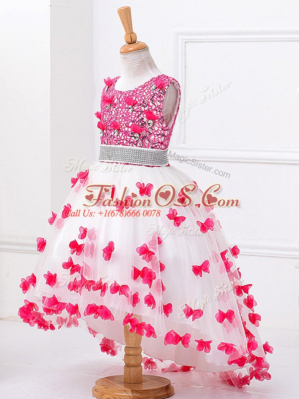 Home >  Special Occasion Dresses >  New Style Little Girl Pageant Dresses > Great High Low White Little Girl Pageant Gowns Tulle Sleeveless Beading and Appliques