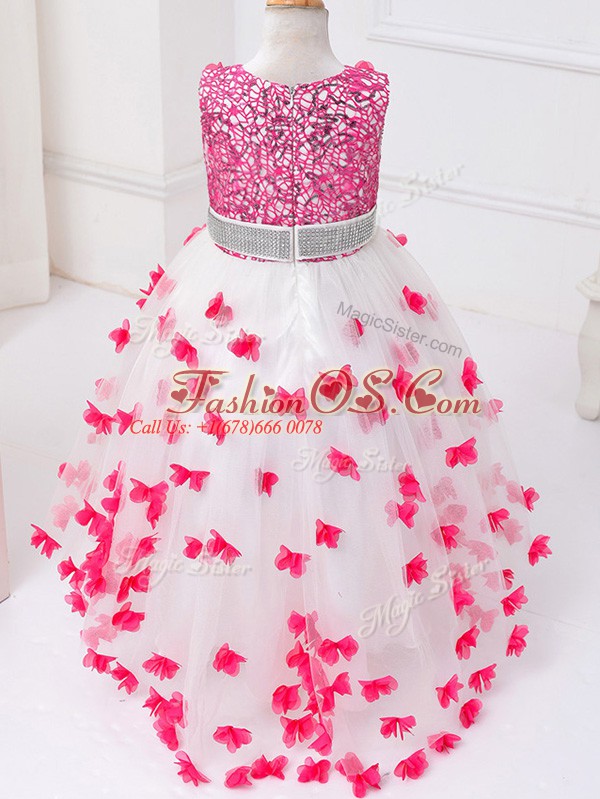 Great High Low White Little Girl Pageant Gowns Tulle Sleeveless Beading and Appliques