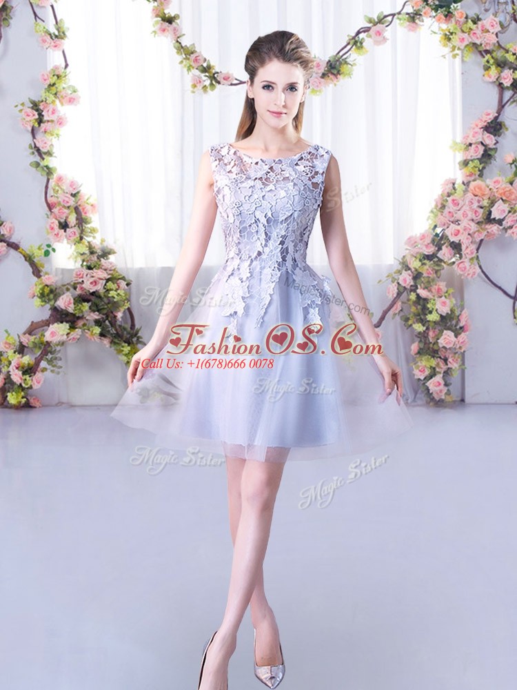 Great Lace Quinceanera Court Dresses Grey Lace Up Sleeveless Mini Length