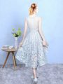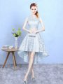Great Light Blue A-line Lace Wedding Guest Dresses Zipper Lace Sleeveless High Low