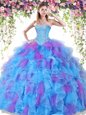 Great Multi-color Lace Up Sweetheart Beading and Ruffles Sweet 16 Dresses Organza Sleeveless