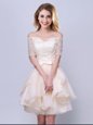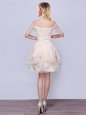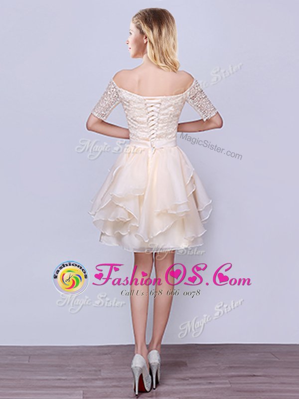 Great Off the Shoulder Champagne Short Sleeves Organza Lace Up Dama Dress for Quinceanera for Prom and Party and Wedding Party