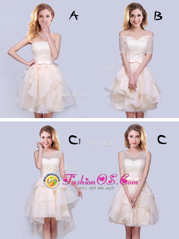 Home >  Special Occasion Dresses >  New Style Dama Dresses > Great Off the Shoulder Champagne Short Sleeves Organza Lace Up Dama Dress for Quinceanera for Prom and Party and Wedding Party