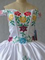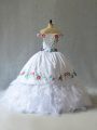 Home >  Quinceanera Dresses >  Fashionable Quinceanera Dresses > Great Off The Shoulder Sleeveless Lace Up Ball Gown Prom Dress White Organza