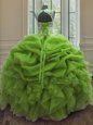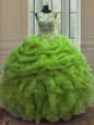 Home >  Quinceanera Dresses >  Cute Quinceanera Dresses > Great Organza Lace Up Scoop Sleeveless Floor Length Ball Gown Prom Dress Beading and Ruffles and Pick Ups