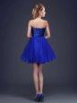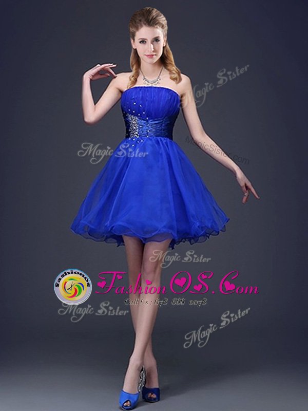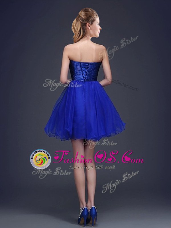 Home >  Special Occasion Dresses >  Cheap Dama Dresses > Great Royal Blue Sleeveless Beading and Ruching Mini Length Court Dresses for Sweet 16