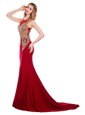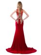 Great Scoop Sleeveless Brush Train Side Zipper With Train Lace and Appliques Evening Wear