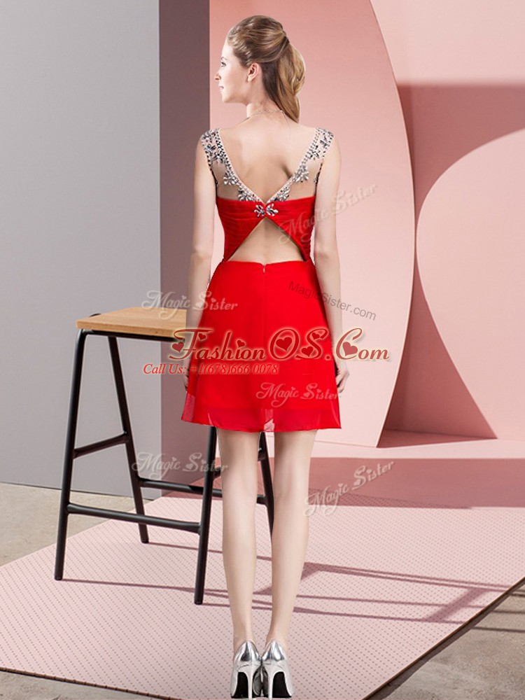 Great Sleeveless Backless Mini Length Beading Club Wear