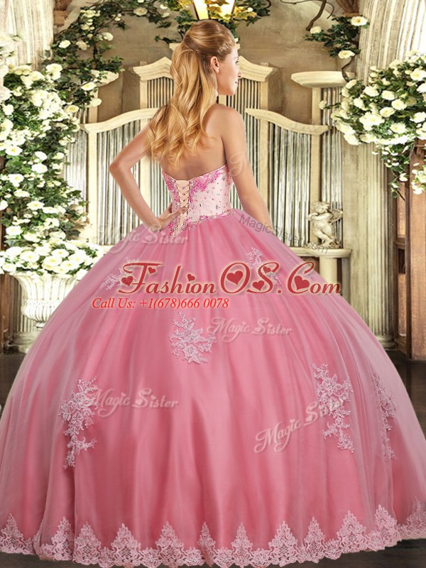 Home >  Quinceanera Dresses >  Quinceanera Dresses 2018 > Great Sleeveless Floor Length Beading and Appliques Lace Up Sweet 16 Dresses with Watermelon Red