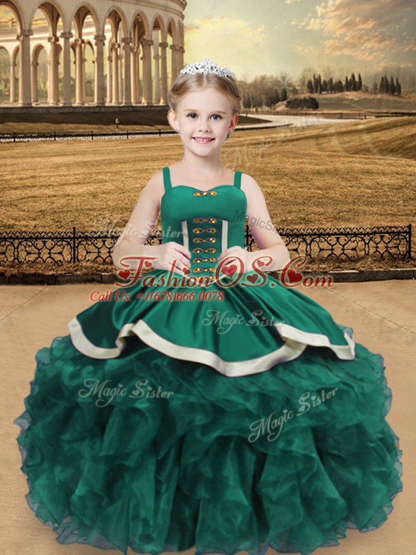 Home >  Special Occasion Dresses >  Beautiful Kids Pageant Dresses > Great Turquoise Organza Lace Up Winning Pageant Gowns Sleeveless Floor Length Beading and Ruffles