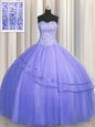 Great Visible Boning Puffy Skirt Floor Length Lace Up Quinceanera Dresses Purple and In for Military Ball and Sweet 16 and Quinceanera with Beading