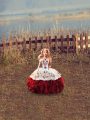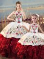 Great White And Red Lace Up Sweet 16 Dresses Embroidery and Ruffles Sleeveless Floor Length