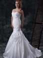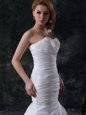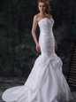 Home >  Wedding Dresses >  Popular Wedding Dresses > Great White Mermaid Ruching and Pick Ups and Hand Made Flower Wedding Gown Lace Up Taffeta Sleeveless With Train