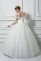 Home >  Wedding Dresses >  Wedding Dresses 2019 > Great White Short Sleeves Floor Length Beading and Appliques Lace Up Wedding Dresses