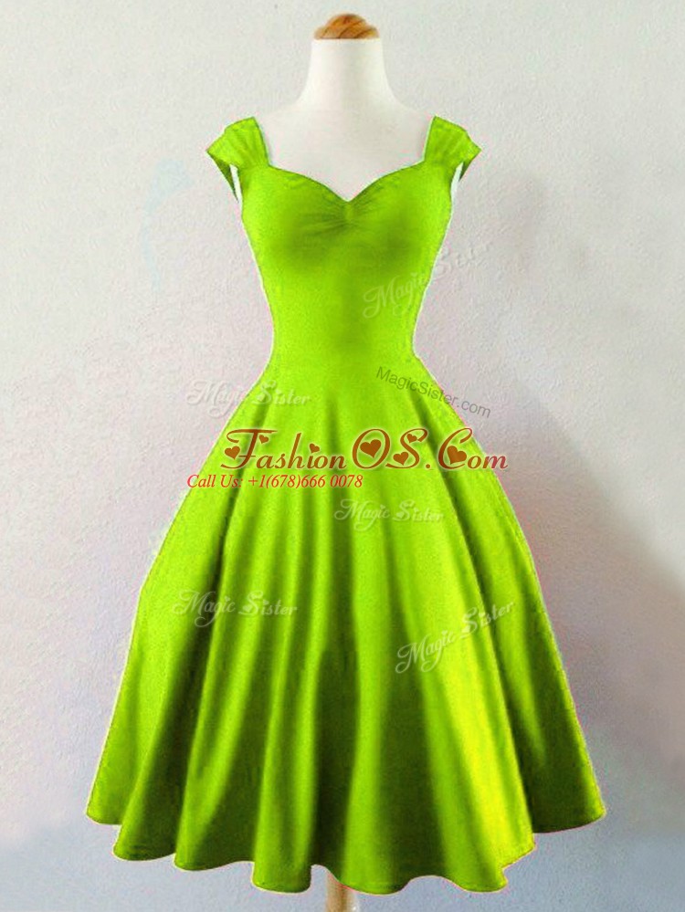 Great Yellow Green Lace Up Bridesmaids Dress Ruching Sleeveless Mini Length