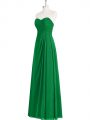 Green A-line Chiffon Sweetheart Sleeveless Ruching Floor Length Zipper Prom Dresses