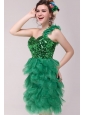 Green A-line One Shoulder Sequins and Ruffles Prom Dress