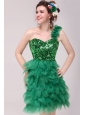 Home >  Prom Dresses >  Short Prom Dresses > Green A-line One Shoulder Sequins and Ruffles Prom Dress