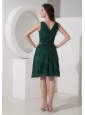 Home >  Special Occasion Dresses >  Dama Dresses for Quinceanera > Green A-Line / Princess V-neck Ruched Short Dama Dresses for Quinceanera