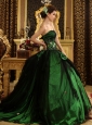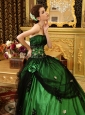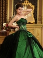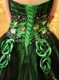 Home >  Quinceanera Dresses >  Fashionable Quinceanera Dresses > Green And Black A-line Strapless Hand Made Flowers Tulle With Beaded Decorate Waist Custom Made Quinceanera Dress