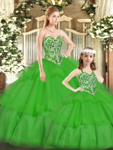 Green Ball Gowns Beading Quinceanera Dress Lace Up Tulle Sleeveless Floor Length