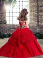 Green Ball Gowns Off The Shoulder Sleeveless Tulle Floor Length Lace Up Beading and Lace and Appliques Girls Pageant Dresses