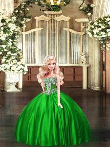 Green Ball Gowns Strapless Sleeveless Organza Floor Length Lace Up Beading 15 Quinceanera Dress