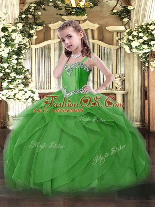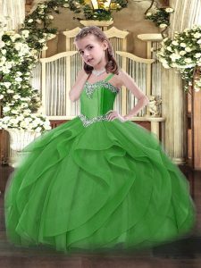 Home >  Special Occasion Dresses >  Beautiful Kids Pageant Dresses > Green Ball Gowns Straps Sleeveless Tulle Floor Length Lace Up Beading and Ruffles Pageant Gowns