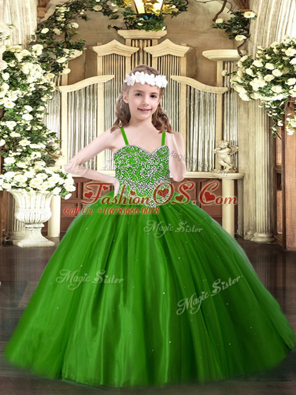 Home >  Special Occasion Dresses >  Pretty Little Girl Pageant Dresses > Green Ball Gowns Straps Sleeveless Tulle Floor Length Lace Up Beading Little Girls Pageant Gowns