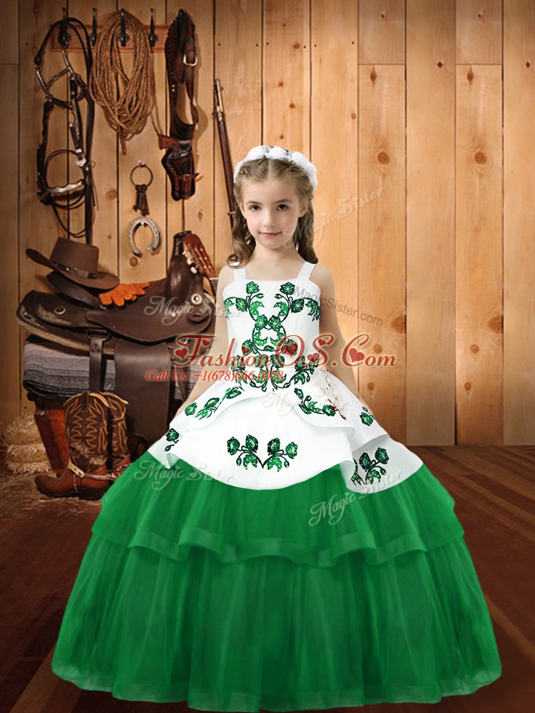 Home >  Special Occasion Dresses >  Beautiful Kids Pageant Dresses > Green Ball Gowns Tulle Straps Sleeveless Embroidery Floor Length Lace Up Pageant Gowns