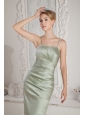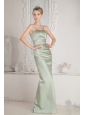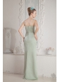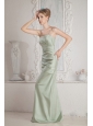 Green Column Straps Beading Bridesmaid Dress Brush Train Satin
