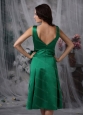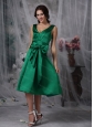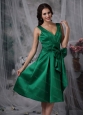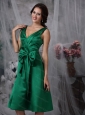 Green Column V-neck Taffeta Bow Dama Dresses On Sale