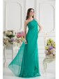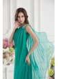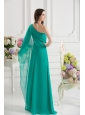 Home >  Prom Dresses >  Elegant Prom Dresses > Green Empire One Shoulder Beading Watteau Train Ruching Prom Dress