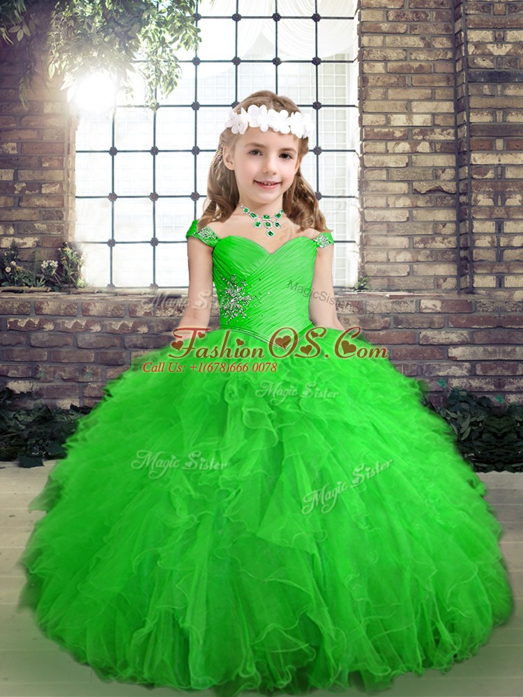 Home >  Special Occasion Dresses >  Lovely Little Girl Pageant Dresses > Green Lace Up Little Girls Pageant Dress Wholesale Beading and Ruffles Sleeveless Floor Length