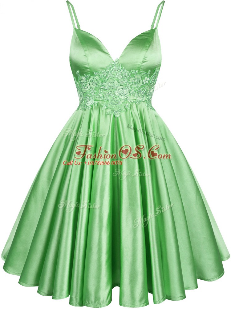 Green Lace Up Quinceanera Court of Honor Dress Lace Sleeveless Knee Length