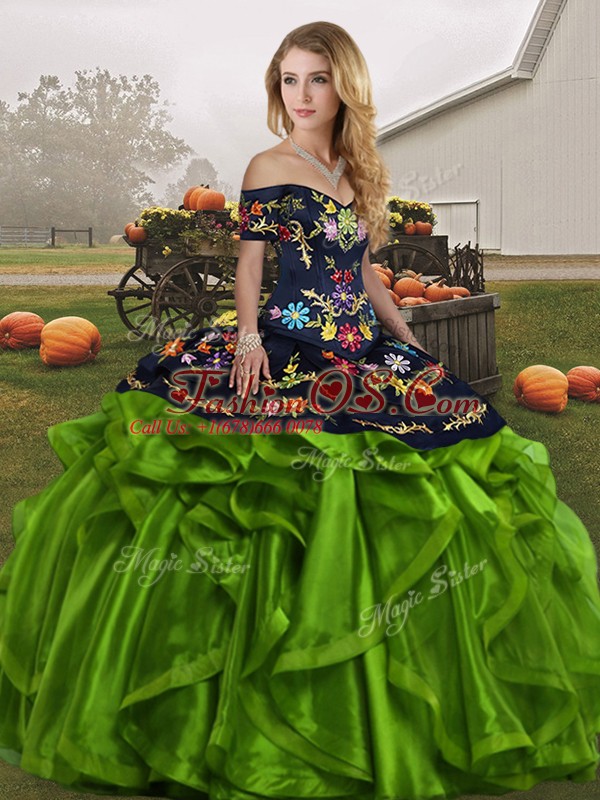 Green Lace Up Sweet 16 Dress Embroidery and Ruffles Sleeveless Floor Length