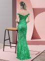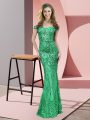Green Mermaid Ruching Prom Dresses Zipper Sequined Sleeveless Floor Length