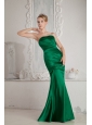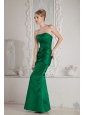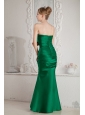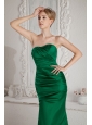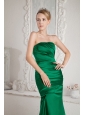 Green Mermaid Strapless Ruch Bridesmaid Dress Floor-length Satin