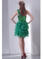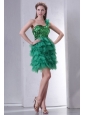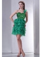 Green One Shoulder Mini-length Sequins and Ruffled Layers Prom Dress