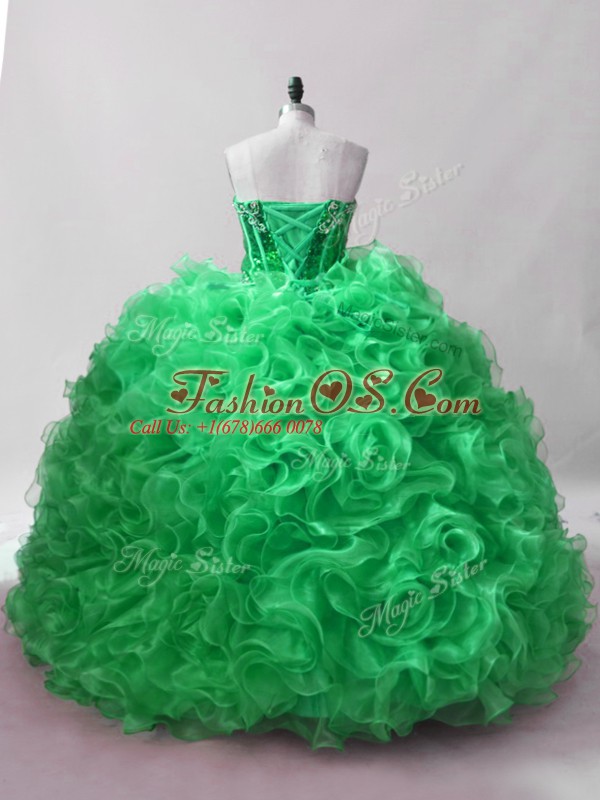 Green Quinceanera Gown Sweet 16 and Quinceanera with Sequins Sweetheart Sleeveless Lace Up