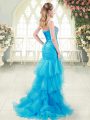 Green Sleeveless Beading and Ruffled Layers Lace Up Homecoming Dress
