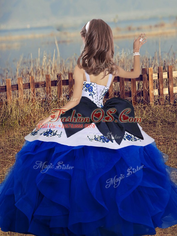 Green Sleeveless Embroidery and Ruffles Floor Length Little Girl Pageant Dress