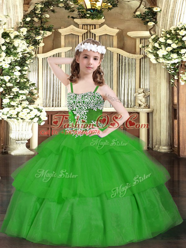 Home >  Special Occasion Dresses >  Beautiful Kids Pageant Dresses > Green Sleeveless Floor Length Appliques and Ruffled Layers Lace Up Pageant Dress for Girls