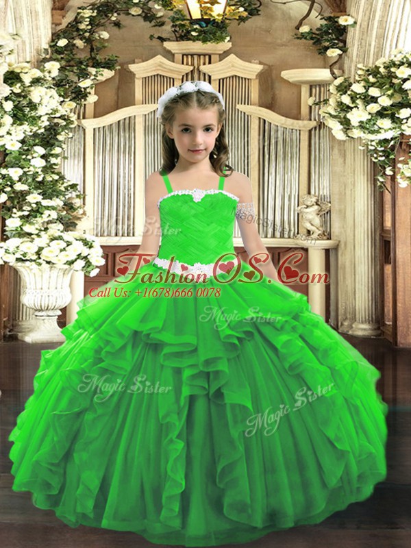 Home >  Special Occasion Dresses >  Lovely Little Girl Pageant Dresses > Green Sleeveless Floor Length Appliques and Ruffles Lace Up Little Girls Pageant Dress Wholesale